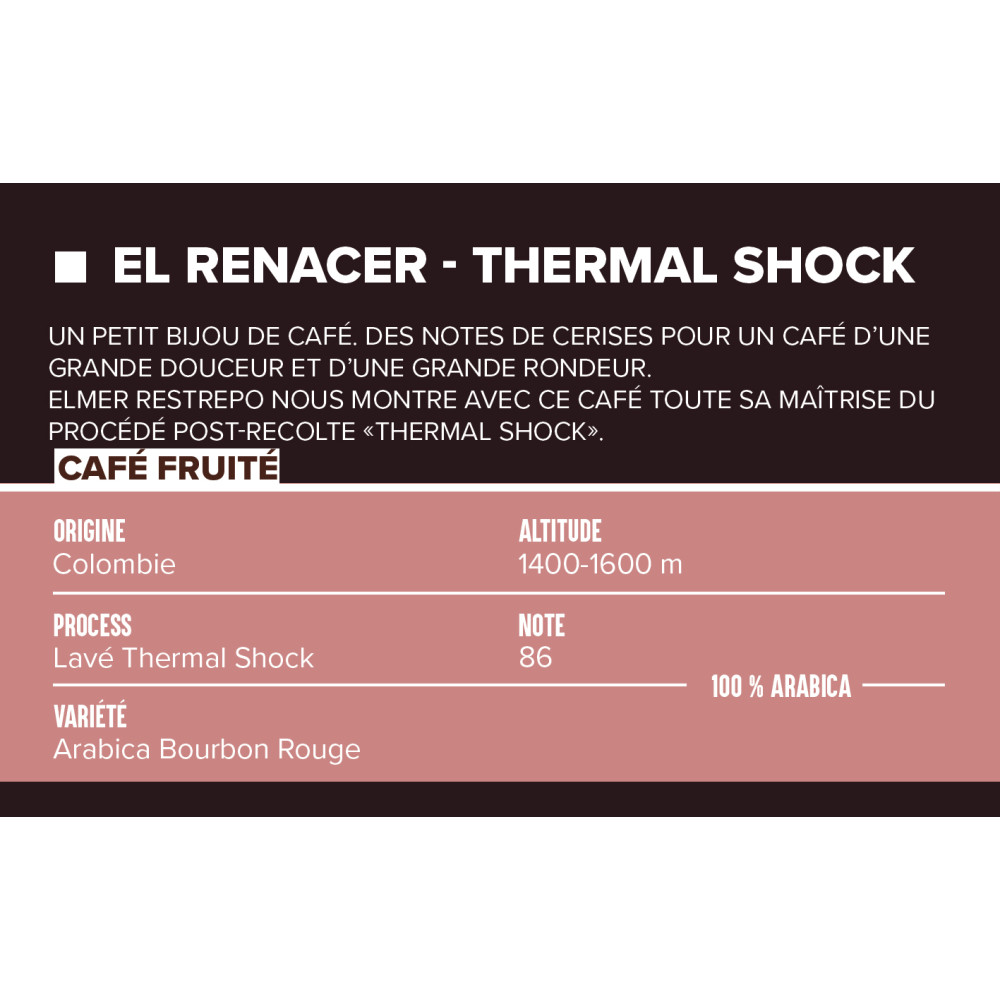 Cultivé entre 1 400 et 1 800 mètres d’altitude, au cœur de la région de Chinchiná dans le Caldas, ce Bourbon Rouge du producteur Elmer Restrepo incarne tout ce que la Colombie a de plus noble à offrir. Sa ferme, baptisée El Renacer (“la renaissance”), s’étend sur 30 hectares de pentes verdoyantes où l’Arabica prospère dans un climat tempéré, favorisant une maturation lente des cerises et une concentration aromatique exceptionnelle.