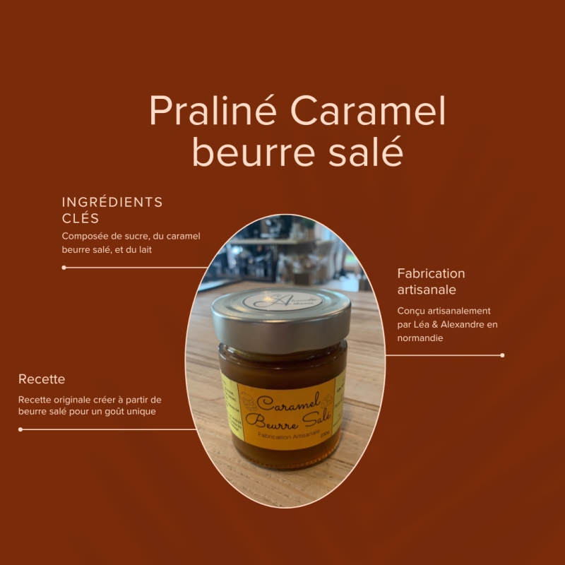 Au cœur de cette démarche, l’attention aux détails et la sélection rigoureuse des matières premières sont primordiales. Léa Alexandre choisit ses ingrédients avec un soin extrême, privilégiant des sources qui respectent à la fois l'environnement et les producteurs. Le Caramel beurre salé en est une parfaite illustration : chaque lot est confectionné avec des produits de grande qualité, ce qui confère à ce caramel sa texture onctueuse et son goût parfaitement équilibré. Si vous appréciez ce produit alors vous allez adorer ce praliné cacahuète , idéale pour vos petits-déjeuners ou pour sublimer vos desserts .