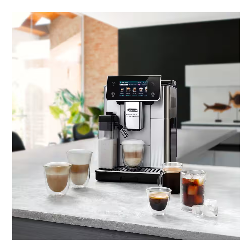 L’interface de la PrimaDonna Aromatic se distingue par un grand écran tactile TFT 5 pouces, bien plus spacieux que celui des autres gammes Delonghi. Les menus sont illustrés, les animations fluides, et la sélection des boissons est d’une lisibilité exemplaire. Les explications détaillées des recettes permettent même aux utilisateurs débutants de comprendre le profil aromatique ou la structure d’une boisson.