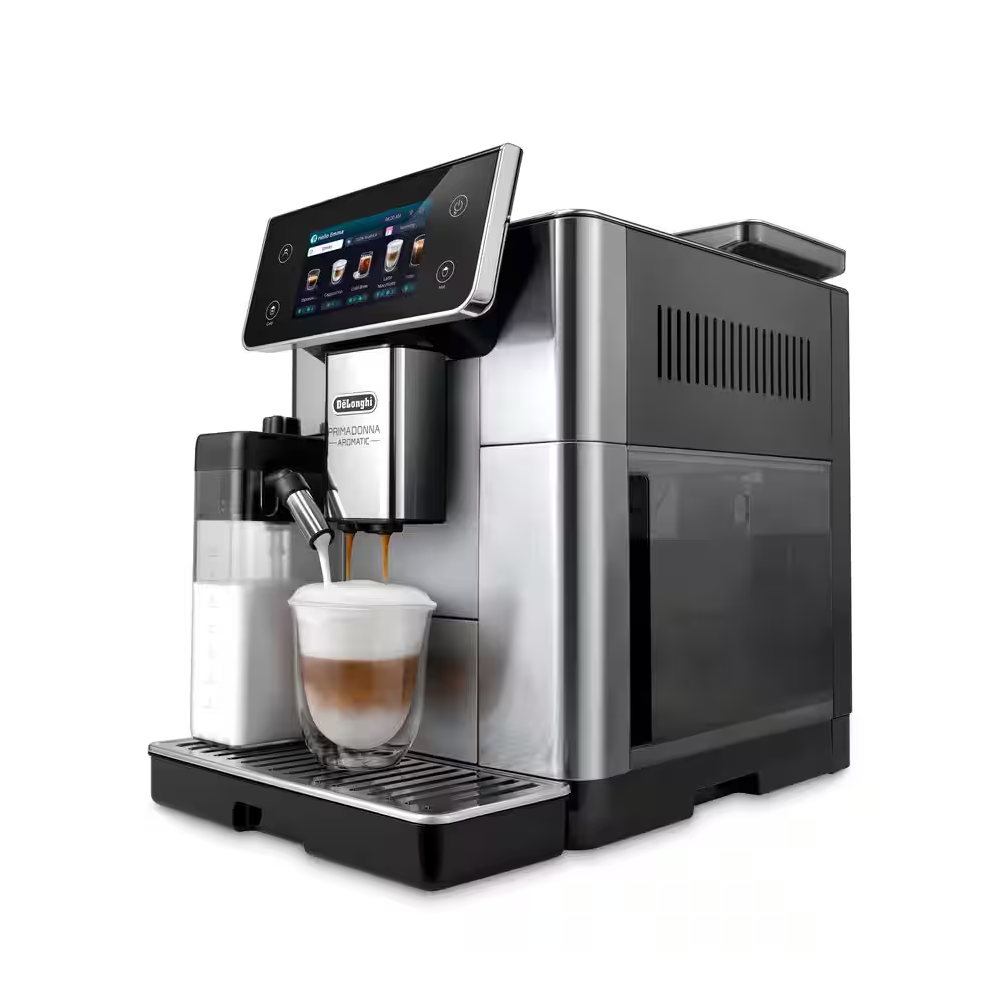 La Delonghi PrimaDonna Aromatic représente la nouvelle génération de machines à café automatiques premium, intégrant les technologies les plus avancées de la marque italienne. Conçue pour offrir une expérience café complète et précise, elle combine une grande variété de boissons, une interface tactile ultra-moderne, une personnalisation avancée et une connectivité WiFi poussée. Son design métal/noir, massif et élégant, confirme son positionnement : une machine d’exception, faite pour durer.