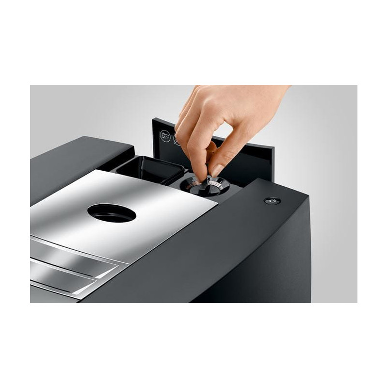 Pour le groupe d'infusion, un programme vous sera proposé tous les 300 cafés environ, avec l'ajout d'une pastille qui sera à introduire dans la trappe à café moulu. La pastille sera dissoute et le produit viendra nettoyer en profondeur le système P.E.P (que l'on retrouve aussi sur la Jura E4) pour décoller les résidus de café éventuels. On explique d'ailleurs le principe du nettoyage du groupe d'infusion Jura dans un de nos articles de blog.