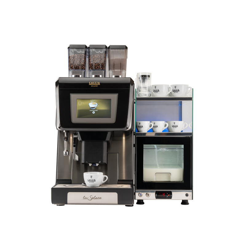 Evoca, à travers sa marque Gaggia, a développé la solution ultime : La Solare. C'est une machine multi-boisson qui utilise la technologie lait frais, et qui est capable de délivrer 150 tasses par jour.