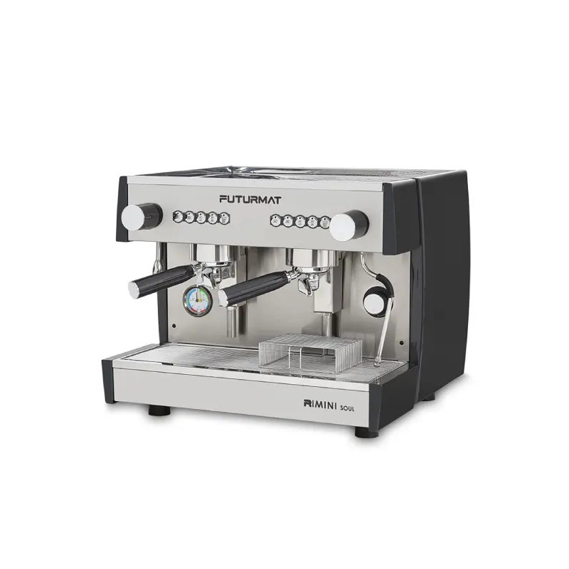 La Futurmat Rimini Soul deux groupes représente une solution idéale pour ceux qui recherchent non seulement une machine performante mais également capable de gérer un volume de travail élevé sans faire de compromis sur la qualité du café, et ce, à un prix compétitif. Elle incarne le mariage réussi entre la robustesse, l'innovation technique, et le design italien, assurant à la fois une utilisation intuitive et une fiabilité sans faille.